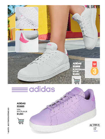 17 ADIDAS ID3886 BLANCO/ROSA_ 22.5-25 $1,084 STYLE ADIDAS ID3885 * HASTA AGOTAR EXISTENCIAS. $1,050 ACTIVE LILA_ 22.5,23,24,25 17