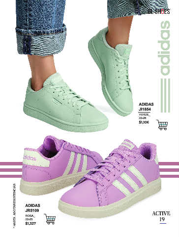 19 ADIDAS JI1854 VERDE_ 22-26 $1,106 * HASTA AGOTAR EXISTENCIAS. ADIDAS ACTIVE JR5109 ROSA_ 19 22-25 $1,327