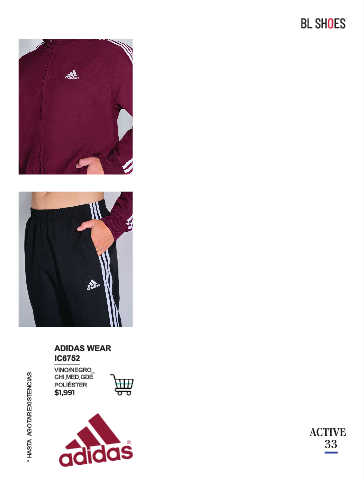 33 ADIDAS WEAR IC6752 VINO/NEGRO_ * HASTA AGOTAR EXISTENCIAS. ACTIVE CHI,MED,GDE POLIÉSTER $1,991 33