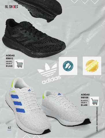 42 ADIDAS IE8812 NEGRO_ 25-28.5 $1,548 ADIDAS IH6106 BLANCO_ 25-28.5 $1,438 * HASTA AGOTAR EXISTENCIAS. 42