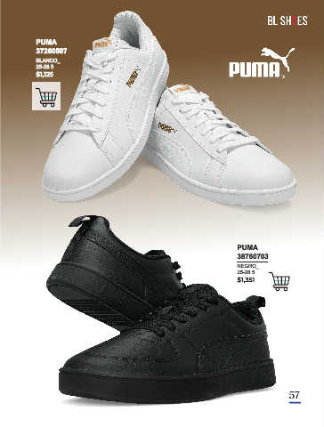 57 PUMA 37260507 BLANCO_ 25-28.5 $1,125 PUMA 38760703 NEGRO_ 25-28.5 $1,351 * HASTA AGOTAR EXISTENCIAS. ACTIVE 57