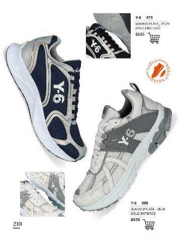 210 Y-6 875 MARINO/PLATA_ 26-29 SÓLO ENTEROS $635 Y-6 880 BLANCO/PLATA_ 26-29 SÓLO ENTEROS $635 210