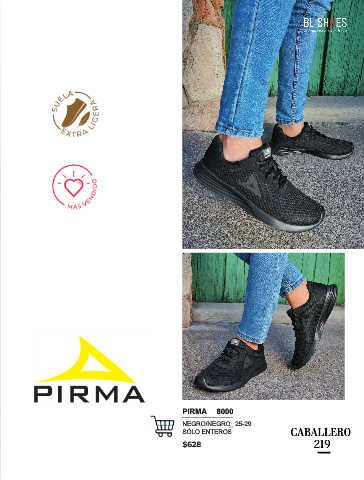 219 PIRMA 8000 NEGRO/NEGRO_ 25-29 SÓLO ENTEROS CABALLERO $628 219