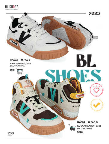 230 2025 BL MAZDA M PAD C BLANCO/NEGRO_ 25-28 SÓLO ENTEROS SHOES $599 MAZDA M PAD B CAFÉ/LATTE/AQUA_ 25-28 SÓLO ENTEROS 230 $626