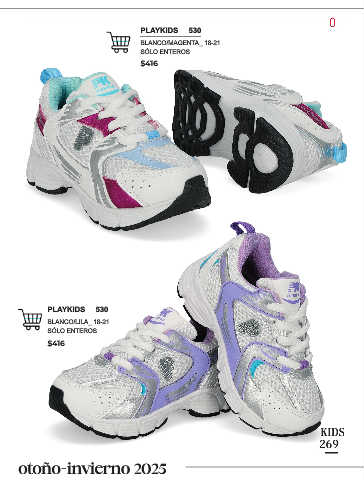 PLAYKIDS 530 269 BLANCO/MAGENTA_ 18-21 SÓLO ENTEROS $416 PLAYKIDS 530 BLANCO/LILA_ 18-21 SÓLO ENTEROS $416 SUNS 5073 BLANCO/GRIS_ 15-21 SÓLO ENTEROS $409 KIDS 269 otoño-invierno 2025