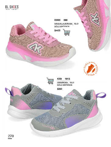 270 EIKEI 080 MAQUILLAJE/ROSA_ 15-21 SÓLO ENTEROS $403 KX9 1813 GRIS/ROSA_ 15-21 SÓLO ENTEROS $361 270