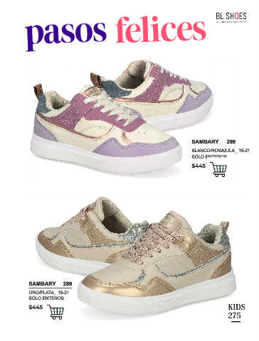 275 SAMBARY 289 BLANCO/ROSA/LILA_ 15-21 SÓLO ENTEROS $445 SAMBARY 289 ORO/PLATA_ 15-21 SÓLO ENTEROS $445 KIDS 275