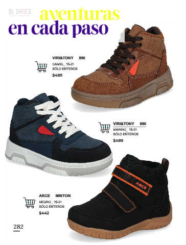 282 VIRI&TONY 890 CAMEL_ 15-21 SÓLO ENTEROS $489 VIRI&TONY 890 MARINO_ 15-21 SÓLO ENTEROS $489 ARCE MINTON NEGRO_ 15-21 SÓLO ENTEROS $442 282