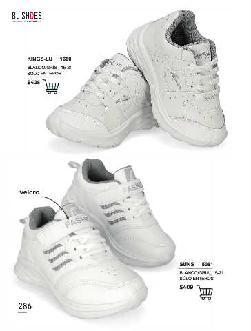 286 KINGS-LU 1650 BLANCO/GRIS_ 15-21 SÓLO ENTEROS $428 velcro SUNS 5081 BLANCO/GRIS_ 15-21 SÓLO ENTEROS $409 286