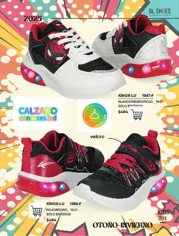 291 2025 KINGS-LU 1647-F BLANCO/NEGRO/ROJO_ 15-21 SÓLO ENTEROS $484 velcro GARPER 650 ROJO/NEGRO_ 15-21 SÓLO ENTEROS $501 KINGS-LU 1690-F ROJO/NEGRO_ 15-21 SÓLO ENTEROS KIDS $484 291 otoño-invierno