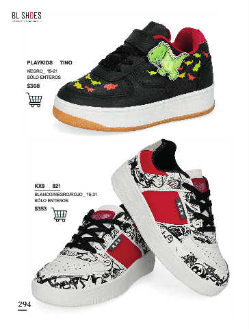 294 PLAYKIDS TINO NEGRO_ 15-21 SÓLO ENTEROS $368 KX9 821 BLANCO/NEGRO/ROJO_ 15-21 SÓLO ENTEROS $353 294