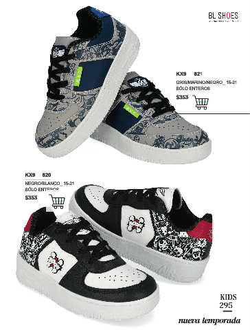 295 KX9 821 GRIS/MARINO/NEGRO_ 15-21 SÓLO ENTEROS $353 KX9 820 NEGRO/BLANCO_ 15-21 SÓLO ENTEROS $353 KIDS 295 nueva temporada