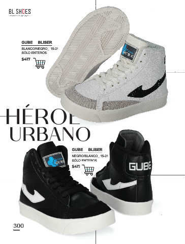 300 GUBE BLISER BLANCO/NEGRO_ 15-21 SÓLO ENTEROS $417 HÉROE URBANO GUBE BLISER NEGRO/BLANCO_ 15-21 SÓLO ENTEROS $417 300