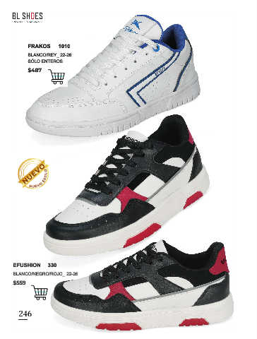 246 FRAKOS 1010 BLANCO/REY_ 22-26 SÓLO ENTEROS $487 EFUSHION 330 BLANCO/NEGRO/ROJO_ 22-26 $559 246